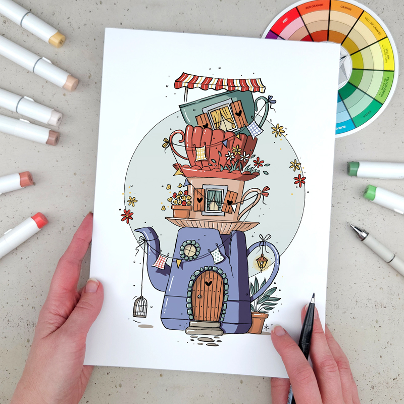 Heej hoi! Ik ben Carla: illustrator, auteur, architect én het gezicht achter het creatieve online cursusplatform carlakamphuis.com. Tekenen is een grote passie van mij met een speciale liefde voor architectuur, van huisportretjes tot fantasiehuisjes. Ik werk graag met fineliners, aquarel en brushpennen, maar ook met alcohol- en acrylmarkers.