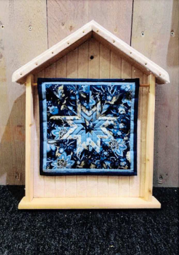 We gaan van een vouwtechniek een klein quiltje maken in de vorm van een kerstster. Deze is heel leuk om met de kerst in een door ons zelf gemaakte houten huisje op te hangen.