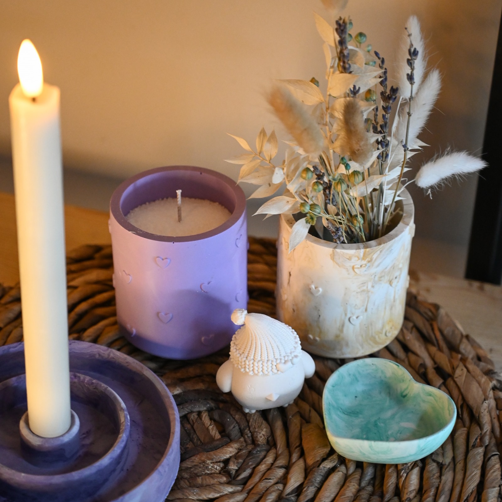 "Jesmonite is één van de meest trendy creatieve gietmaterialen op dit moment! We nemen je graag mee in de magische wereld van Jesmonite! Zo leer je hoe je Jesmonite kunt mengen en je eigen kleuren kunt maken. Of ga je liever voor het marmereffect? Er is keuze uit veel verschillende mallen, zoals een vaasje, schaaltjes, kaarsenstandaards, potjes en nog veel meer. Afhankelijk van de mal die je kiest, kun je twee tot drie items gieten. Na de workshop moeten de creaties nog zo’n 30 minuten uitharden, deze kun je later in de stand ophalen. "