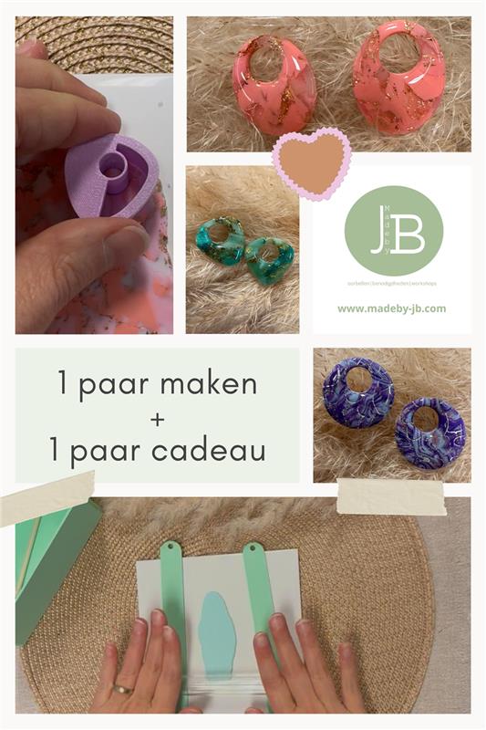Terwijl je creatie in de oven uithardt, mag je ook een extra paar uit onze collectie uitzoeken. Zo ga je naar huis met 2 paar oorbellen.