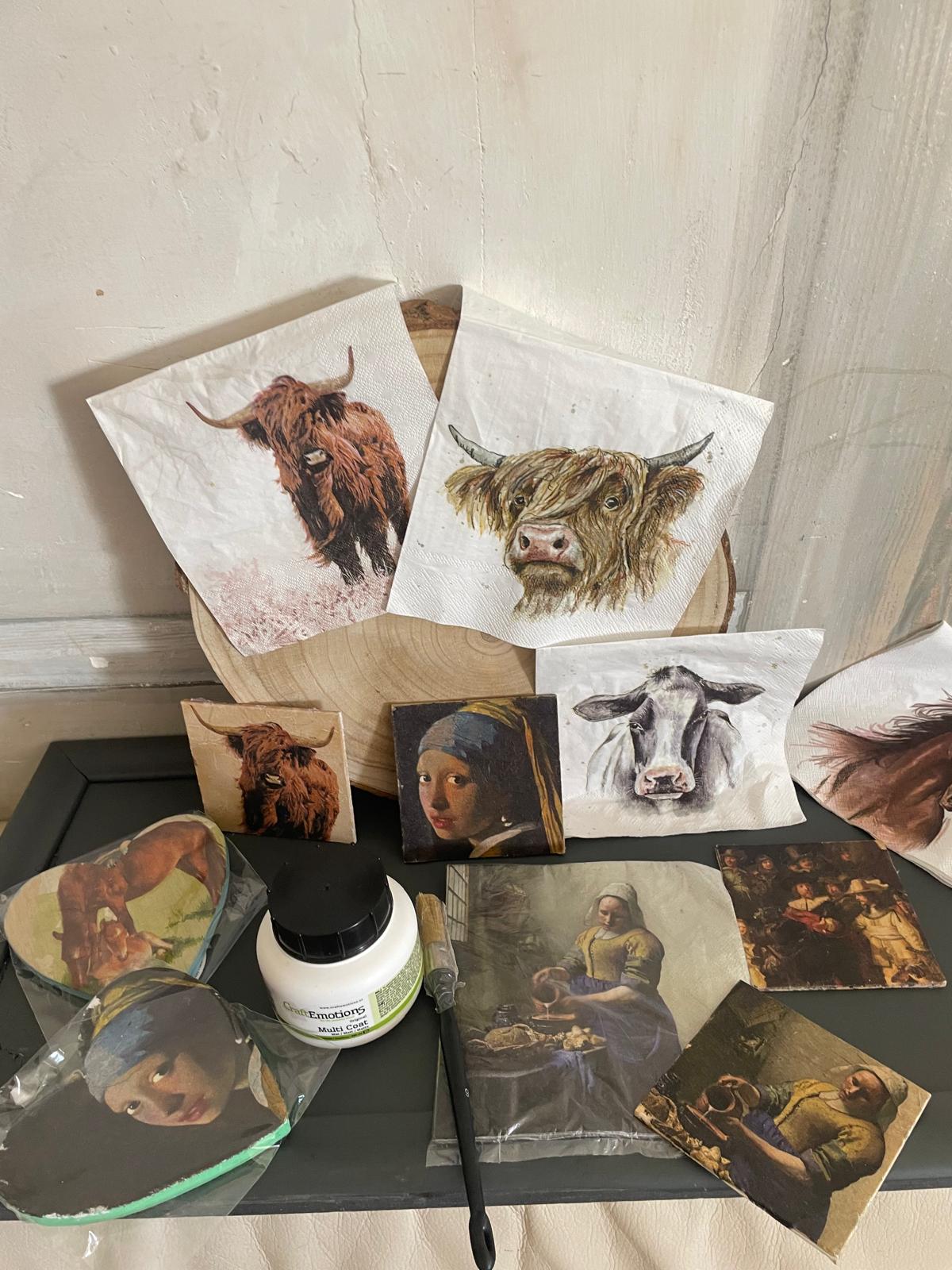 Tijdens de workshop kunt u met servetten diverse houten en andere voorwerpen decoreren met servetten uit onze zeer grote collectie.