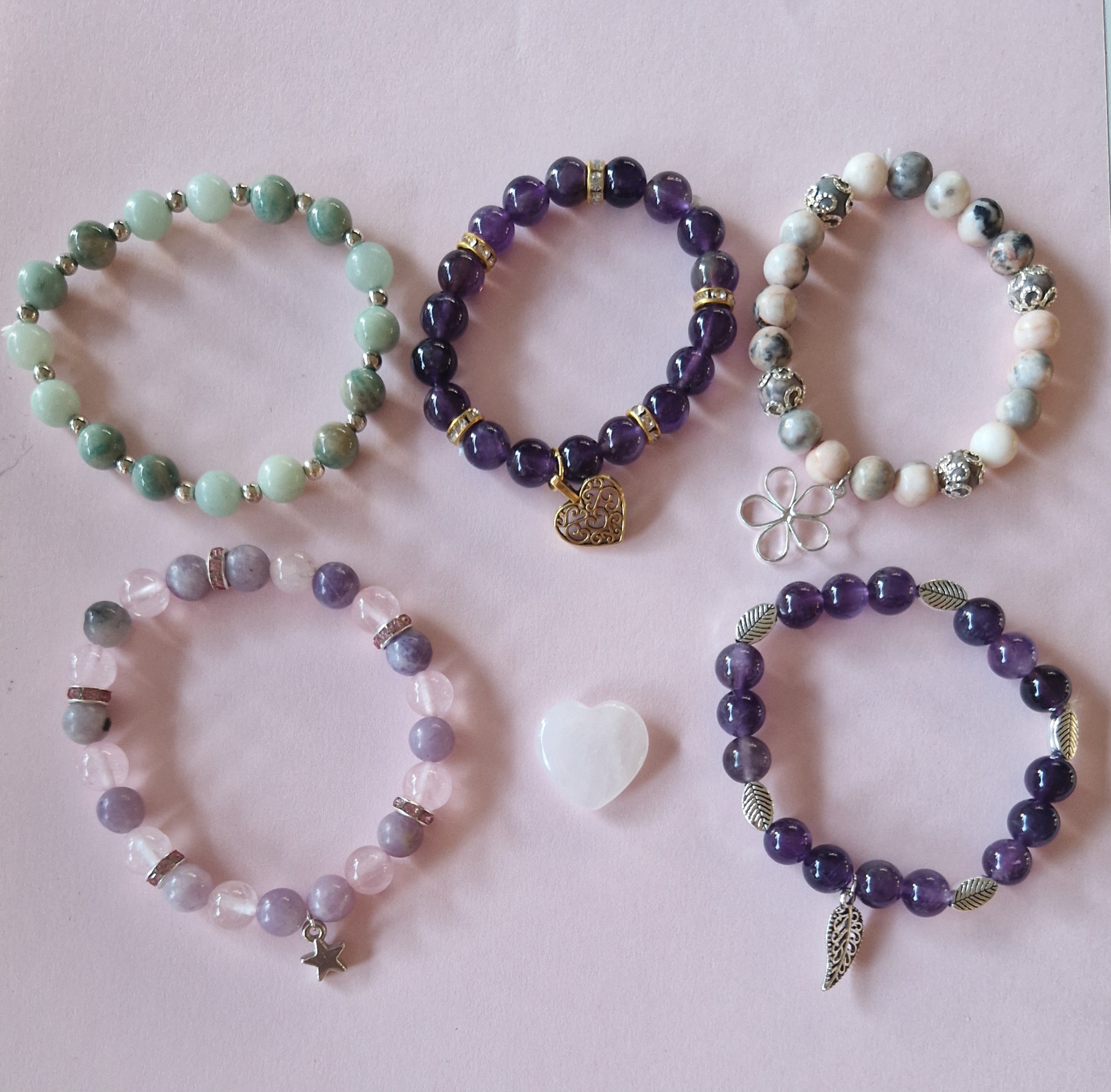Kom bij ons een armband van edelstenen maken! Weet je dat edelstenen ook heel fijn zijn voor kinderen en je kunnen helpen om je goed te voelen? Je kunt beter omgaan met prikkels, beter concentreren, meer liefde voelen, sterk zijn. Edelstenen helpen je heel goed met gevoelens en je wordt er blij van. De armband ziet er ook heel mooi uit want je mag het naar eigen smaak maken. Kies leuke bedels van dieren of hartjes en andere bedels of mooie kralen en bling bling! 12,50 voor kinderen onder de 12 jaar