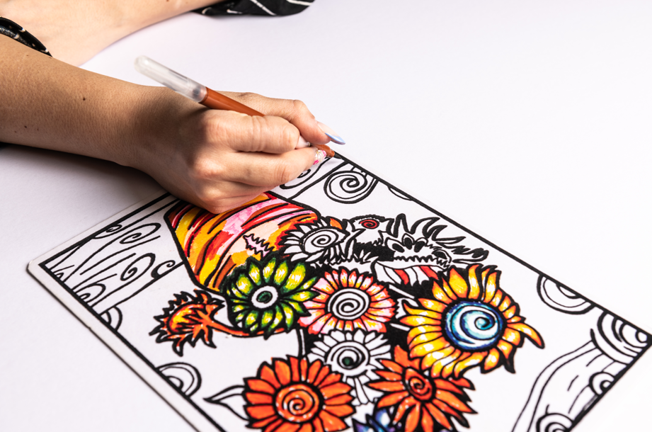 We zijn er de hele dag met een gratis workshop waar iedereen mee kan doen. Ontdek hoe leuk het is om kleurrijke posters in te kleuren met zachte fluwelen contouren – die zorgen ervoor dat je stiften netjes binnen de lijntjes blijven.