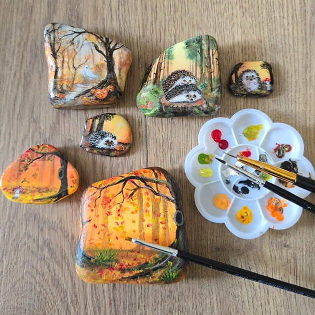 "Altijd al een sfeervolle herfst- of winterachtergrond willen schilderen, maar weet je niet goed waar te beginnen? In deze creatieve workshop neemt Diana je stap voor stap mee, zodat je zelf een prachtig tafereel op steen maakt.