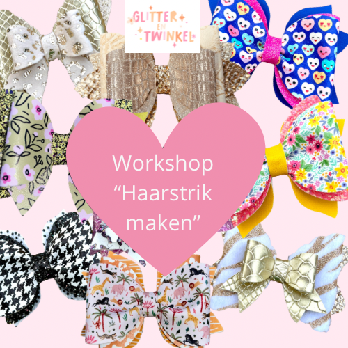 Wil jij een haarstrik maken helemaal naar jouw smaak? Dan kan! Tijdens onze workshop “Haarstrik maken” stel jij je eigen strik samen. Je kiest een leertje, tekent en knipt met behulp van een mal je strik, lijmt deze in elkaar en dan begint het allerleukste: je versiert de strik met steentjes, strikjes, bloemetjes en nog veel meer leuks! Zo ga jij naar huis met jouw allermooiste strik!