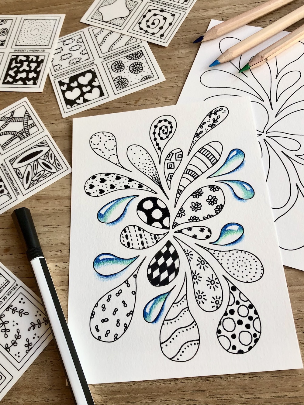 Zorg dat je op tijd bent, want de workshop duurt 40-50 minuutjes. En vergeet niet van tevoren je plekje te reserveren! We maken ook gebruik van vele Sjablonen die makkelijk te overtrekken zijn! Voor Jong en oud gezellig, rustgevend en leuk om te doen!”