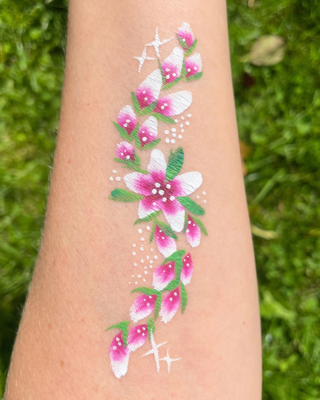 Leer samen de basis van schminken en maak vrolijke bloemen op het gezicht of arm.