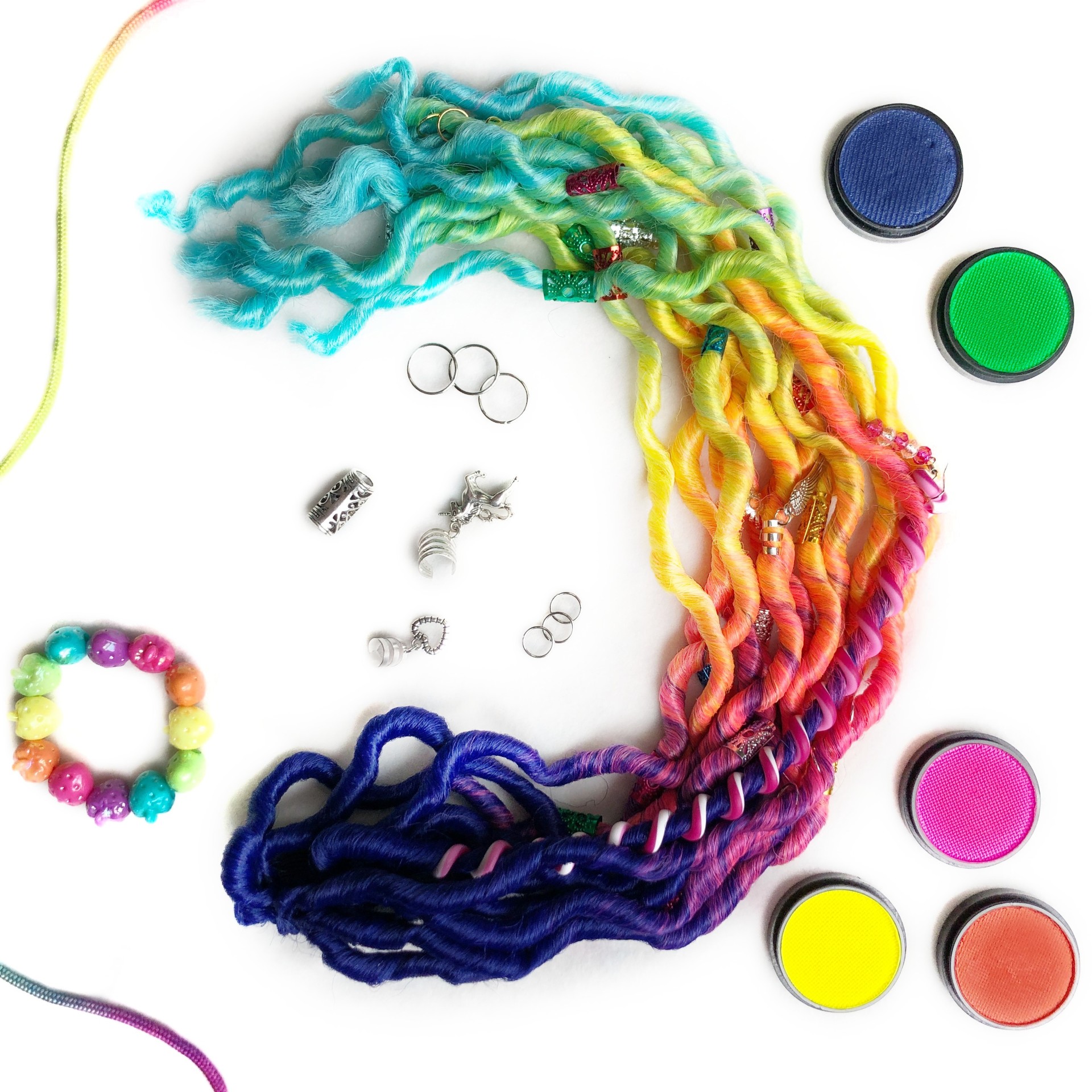 Je kiest een basis haarstuk en versiert dit met glinsterende accessoires, lintjes en creatieve details. Perfect voor festivals, feestjes of om gewoon te stralen op Kreadoe.