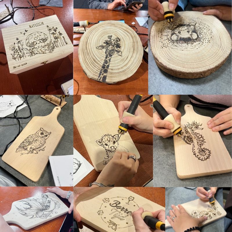 Het is een toegankelijke en ontspannen activiteit, waarbij je aan de slag gaat met een houtbrand set om prachtige ontwerpen in hout te creëren. Let op, we werken met professionele apparatuur en dus geen Pippoos/Lidl/Action Houtbrandenpennen!