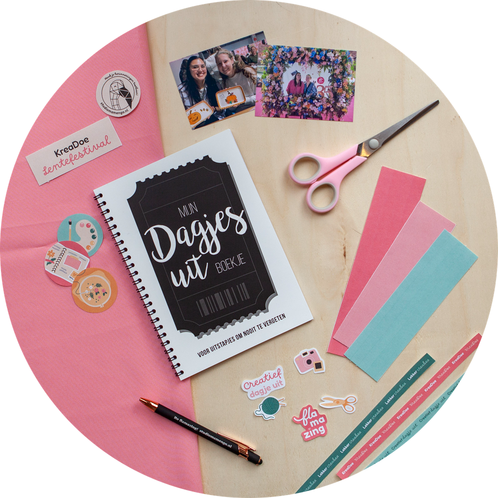 Kom gezellig een Dagjes-uit boekje invullen! Wij maken een leuke KreaDoe-foto van je, die we meteen voor je uitprinten. Deze plak je samen met de papierprintjes en stickers in je boekje. Beantwoord de vragen, knip én plak om jouw boek helemaal eigen te maken.