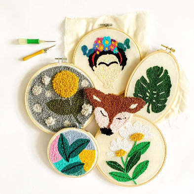 Door middel van prikvilten maak jij in 1 uur tijd een kunstwerkje in een houten borduurring.