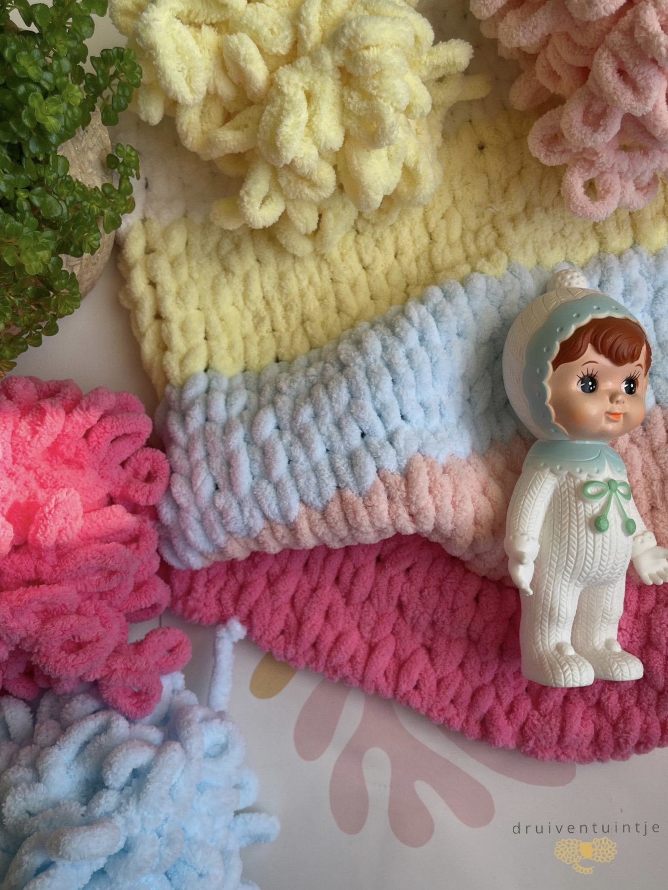 We nemen heel veel garens mee – van zachte kleuren tot vrolijke knalkleuren – zodat je eindeloos kunt combineren.
