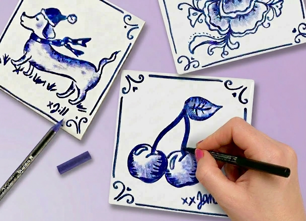 ● Je ontvangt een keramieken tegel om zelf in Delfts blauwe stijl te illustreren