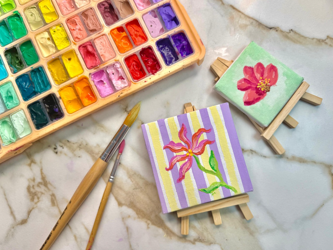Je gaat onder begeleiding van Jill aan de slag met de gouacheverf van Himi en beschildert je eigen mini canvas. Jill geeft je handige tips en tekentrucs hoe je zelf verschillende bloemen kunt tekenen, en helpt je aan de slag met de gouacheverf.
