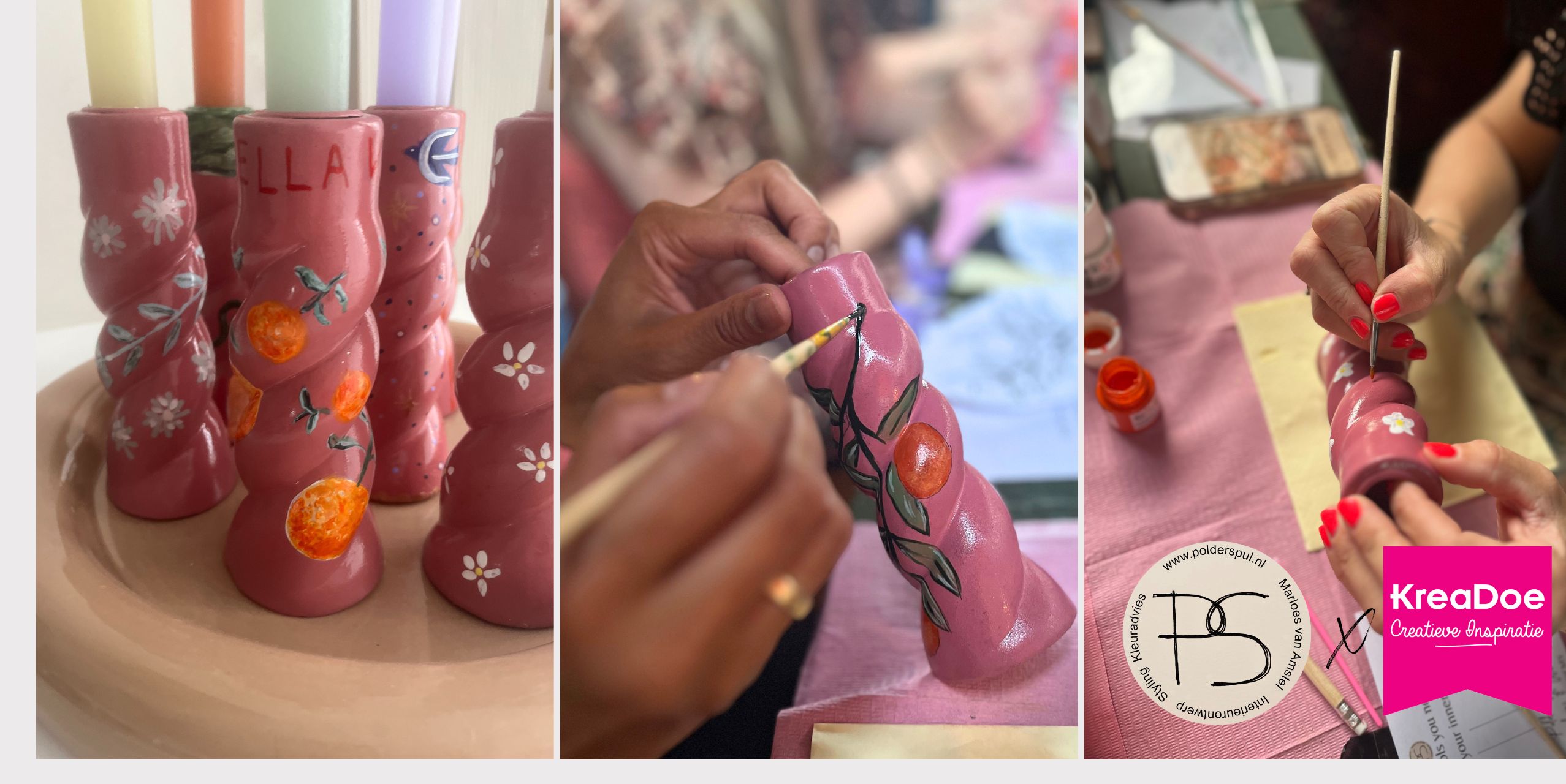 Tijdens deze workshop beschilder jij een fantastosch hippe kandelaar met porceleinverf. Laat je creativiteit de vrije loop terwijl je een kandelaar omtovert tot een prachtig kunstwerk. leuk voor in jouw interieur om als decotratie neer te zetten. tijdsduur max 45 minuten. € 12,50