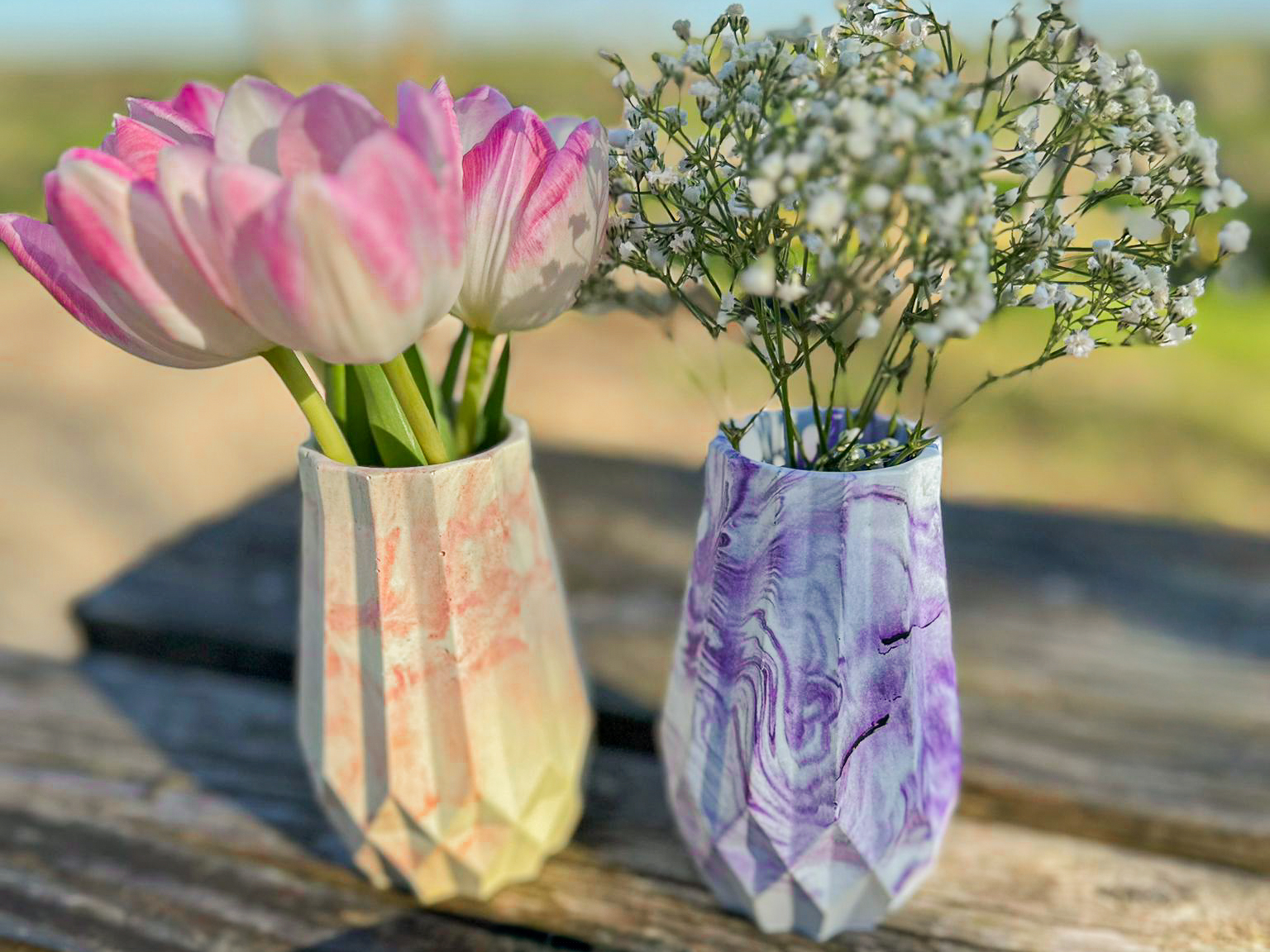 🎨 Tijdens de workshop giet je een tweetal items en kun je experimenteren met verschillende technieken (o.a. marmeren, colorblocking).